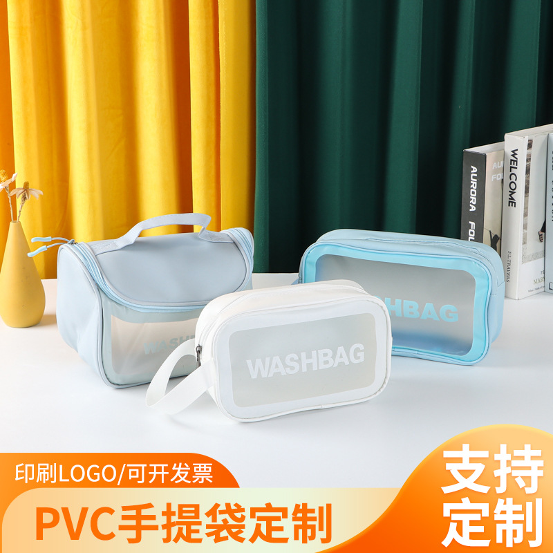 pvc手提袋化妆包定制塑料洗漱包防水磨砂旅行出差便携化妆收纳袋