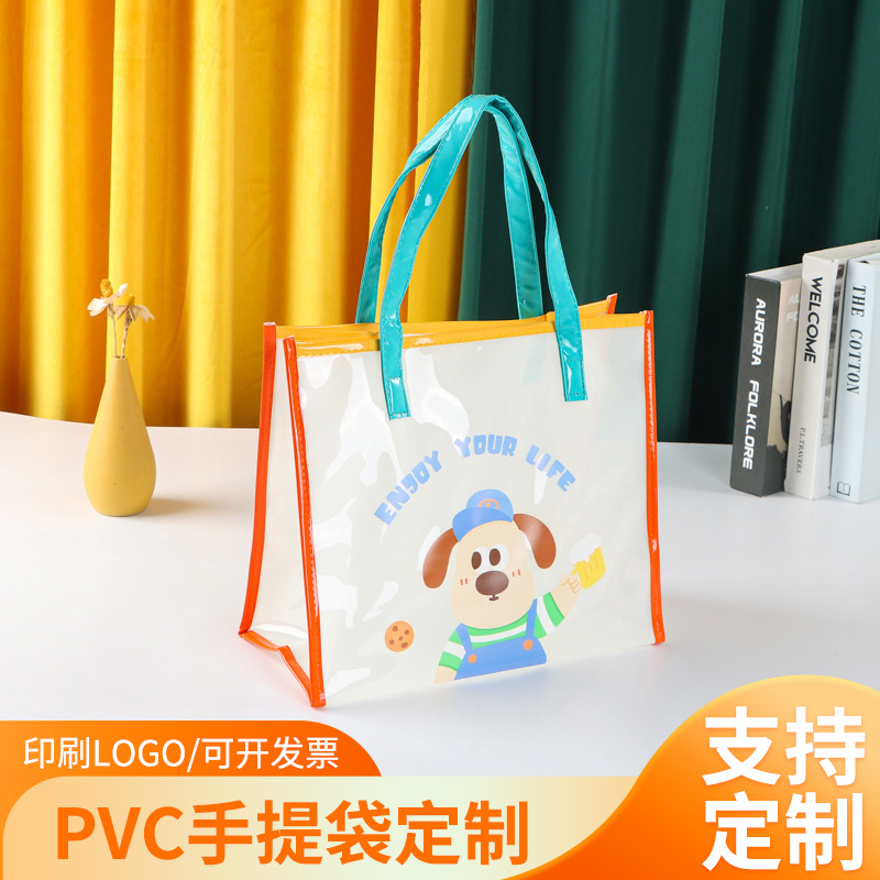 PVC手提袋定 制塑料袋可印图案透明卡通日常旅行化妆会展礼品购物