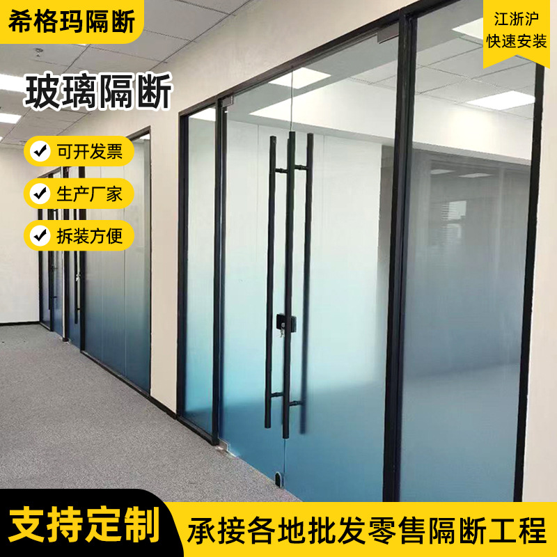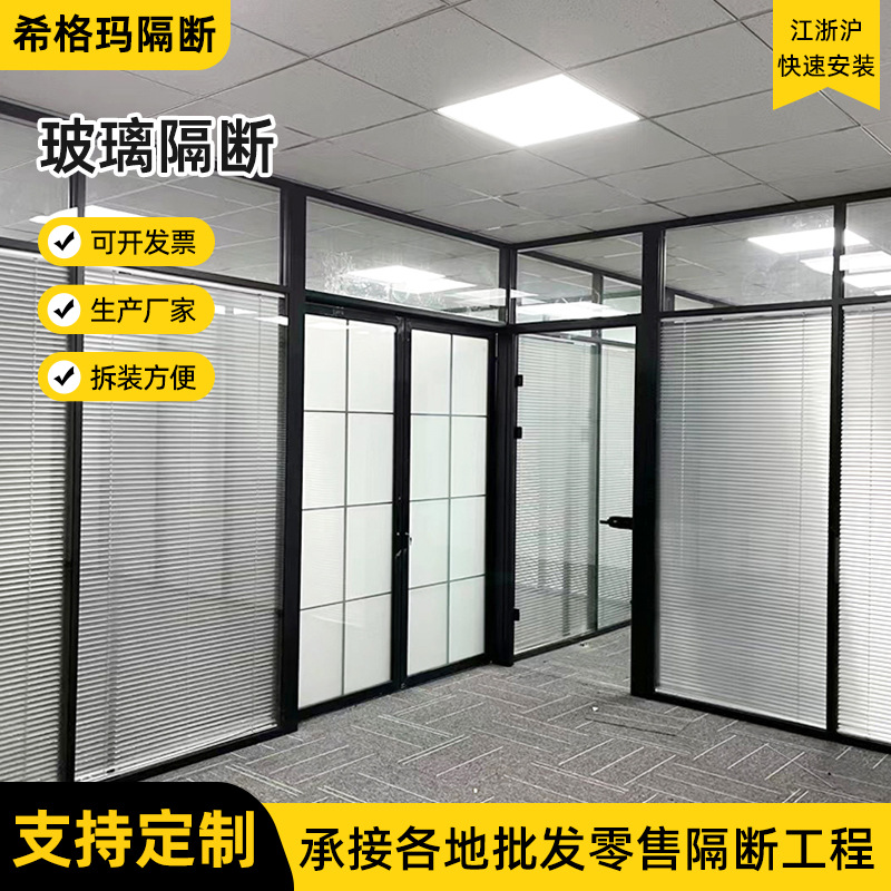 玻璃隔断现代简约写字楼钢化玻璃隔断墙铝合金双玻办公室百叶隔断