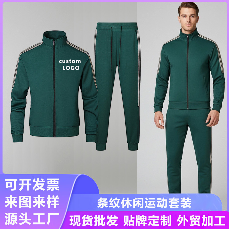 新品休闲运动套装开衫斜纹棉春秋套装立领运动套装定制团体工作服