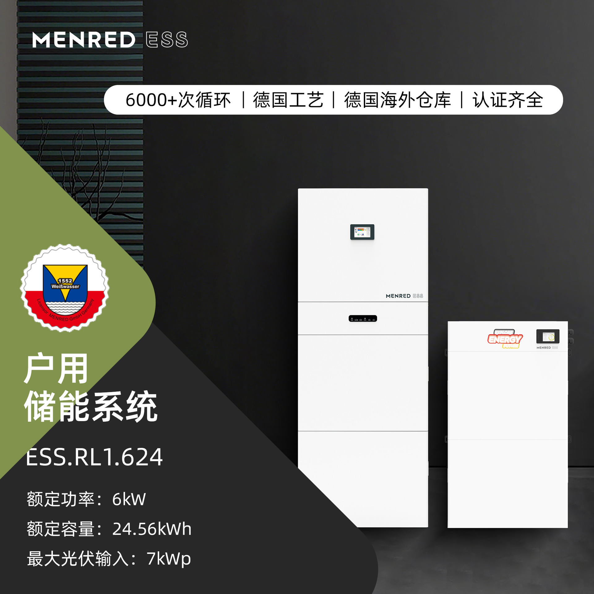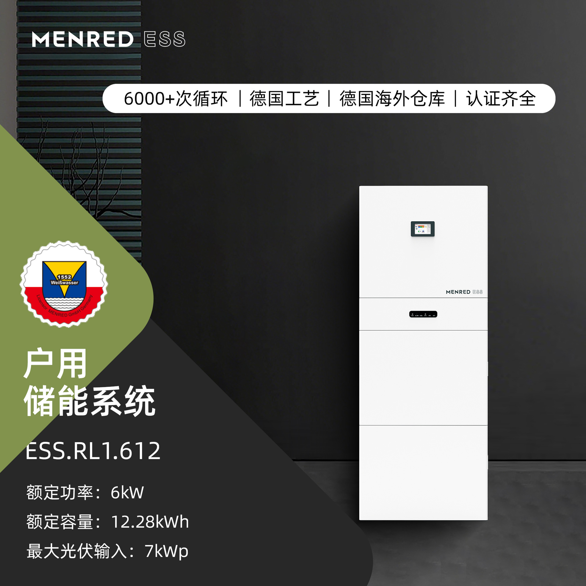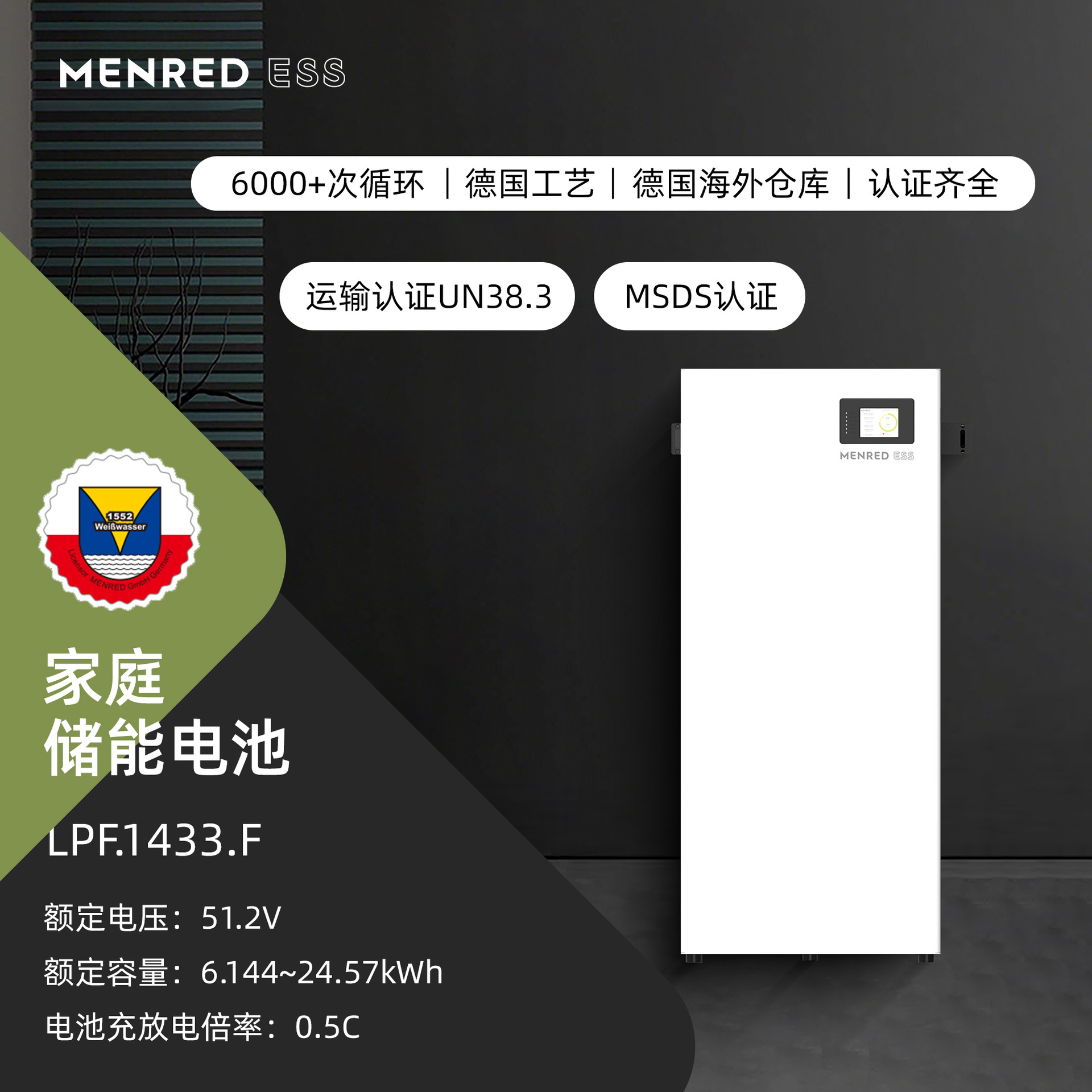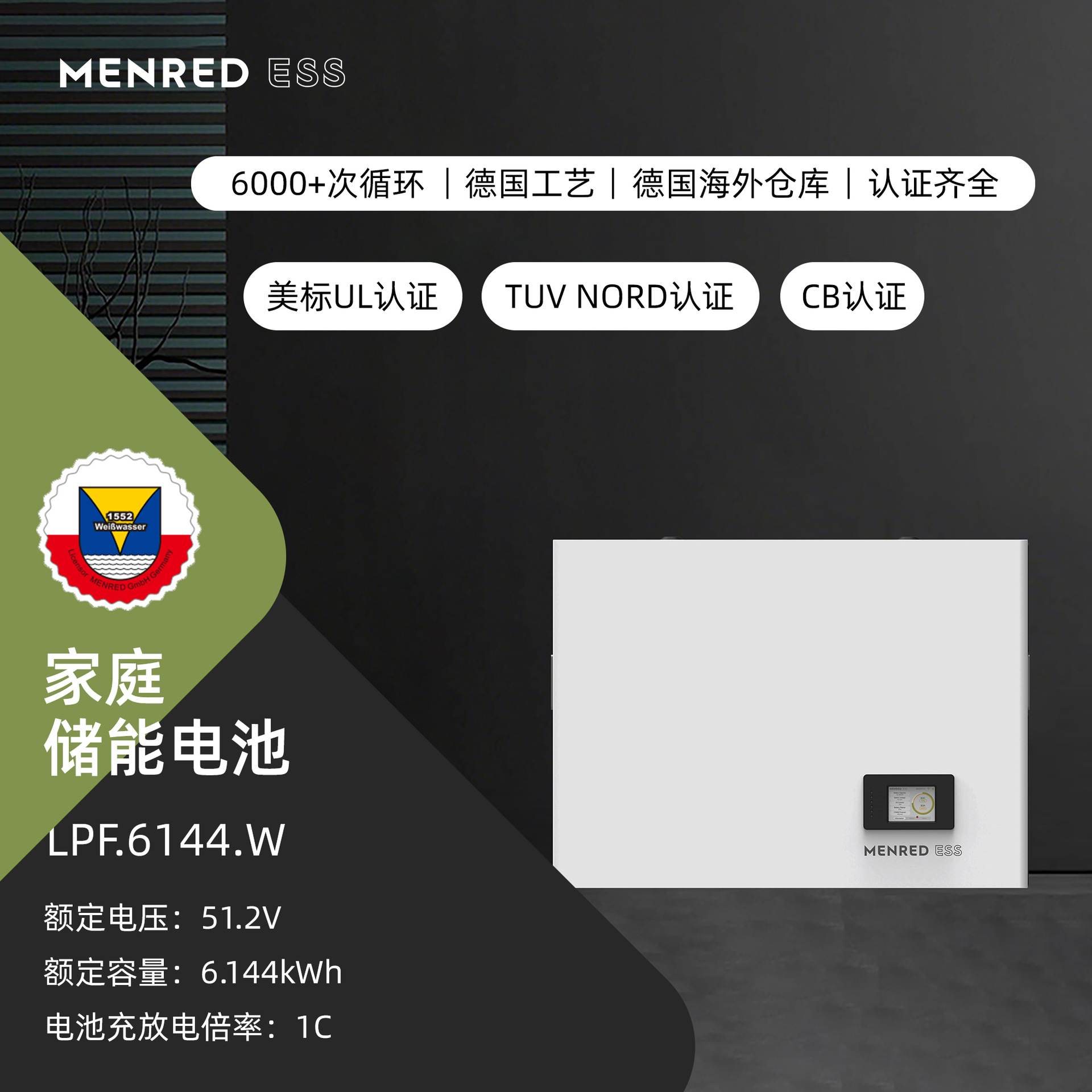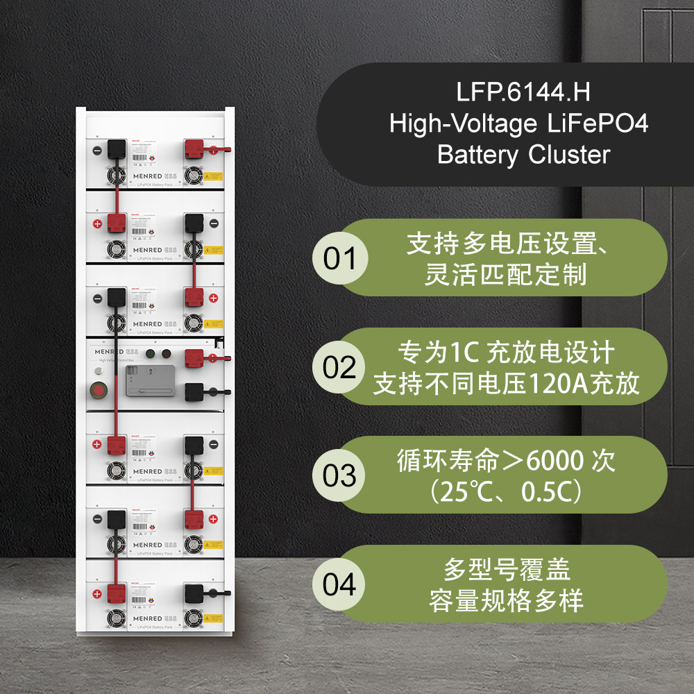 曼瑞德光伏太阳能壁挂磷酸铁锂电池51.2V6KWH家用储能6度可定制