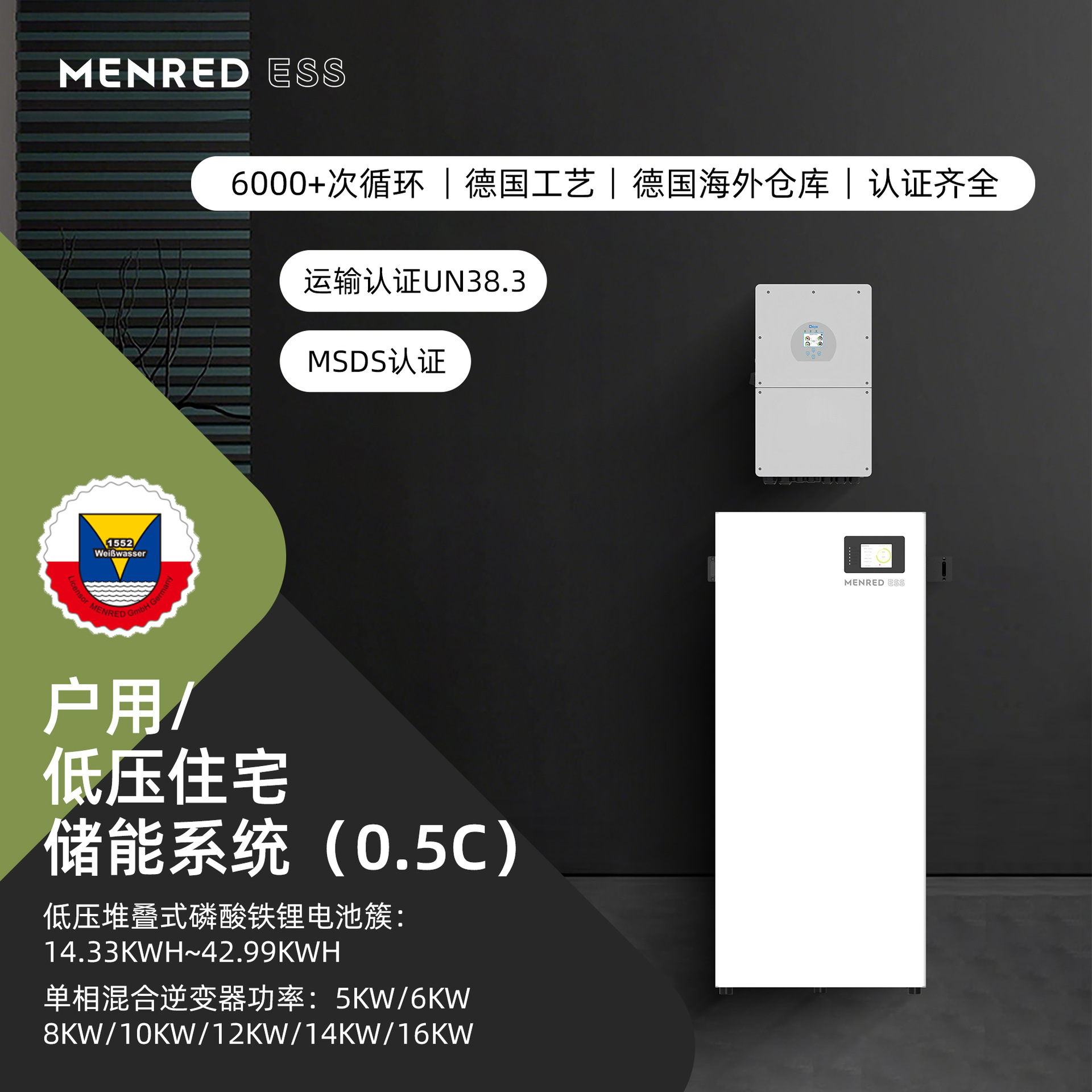 曼瑞德单相低压住宅(户用)储能0.5C系列逆变器加储能电池簇可定制
