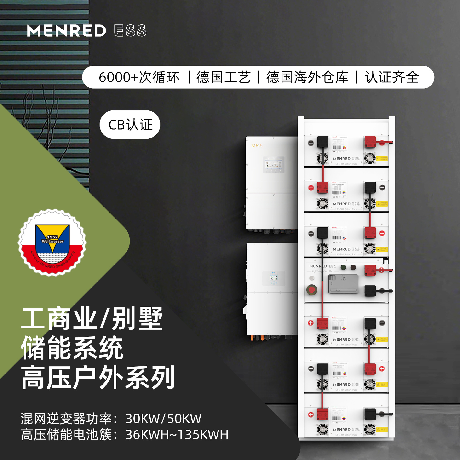 曼瑞德工商业别墅储能系统高压户内系列混网逆变器储能电池可定制