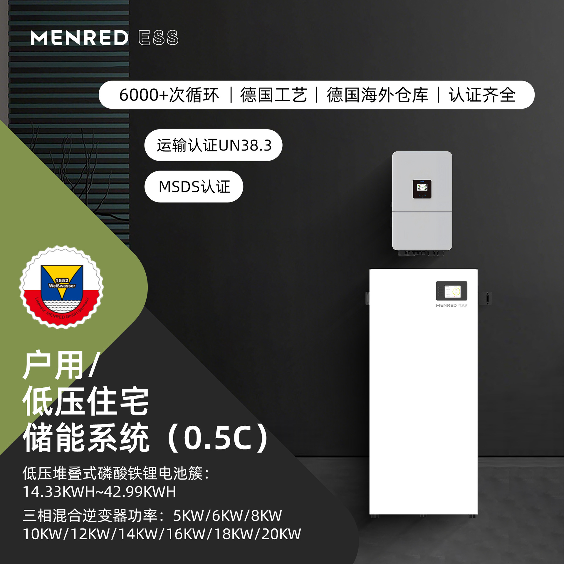 曼瑞德三相低压住宅(户用)储能0.5C系列逆变器加电池簇可定制智能