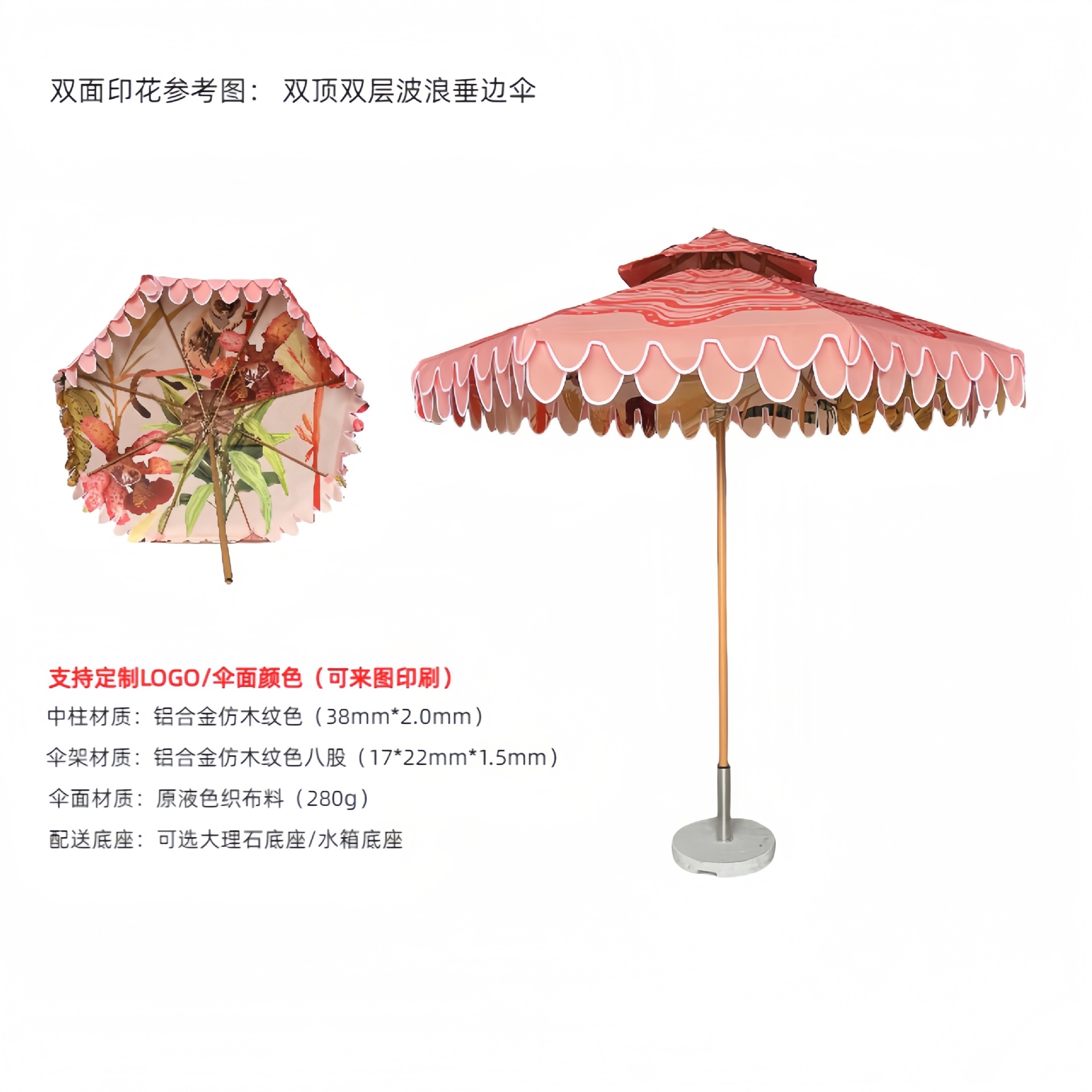 户外休闲双层波浪边遮阳伞浪漫婚礼咖啡厅别墅沙滩大伞大型