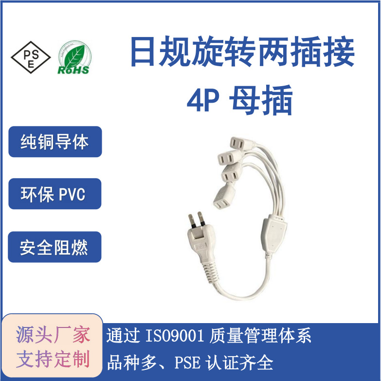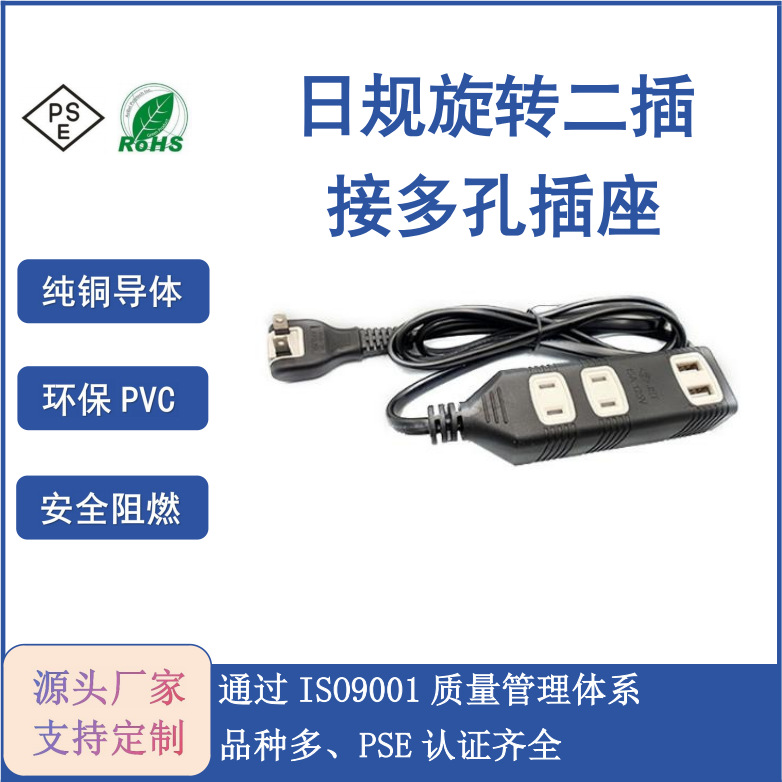 PSE插头1拖4电源线 日规旋转头加4P母插 日本二插家用电器延长线