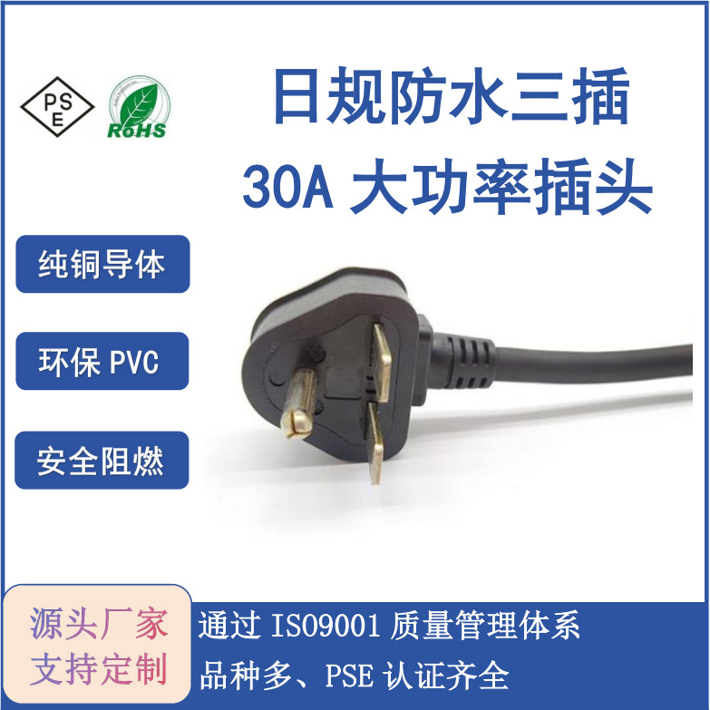 PSE日本30A防水三插电源线日规30A三插电源线日标30A三插电源线