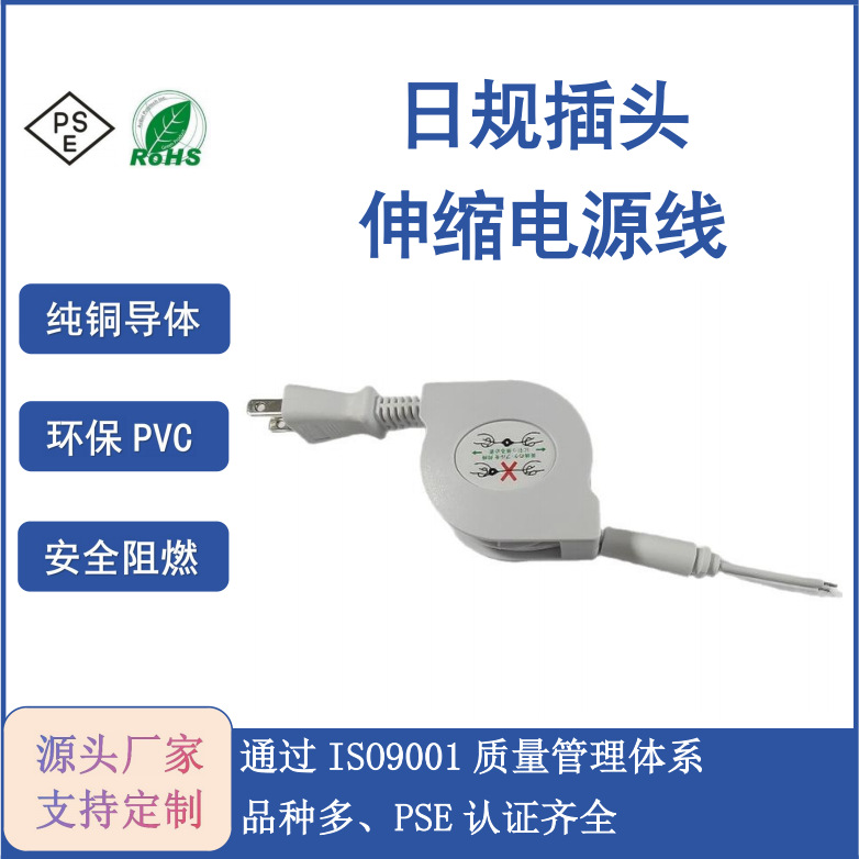 日规插头伸缩电源线PSE认证 日标两插伸缩延长线日本两芯延长线