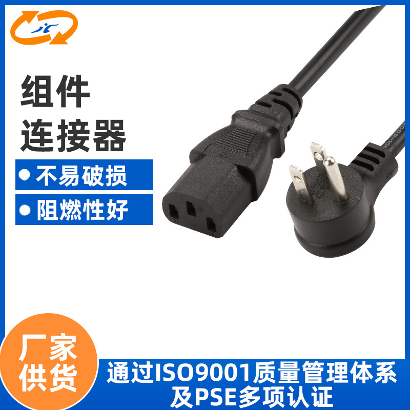 日规弯头三插AC线日本家用电器PSE认证三芯纯铜电源线
