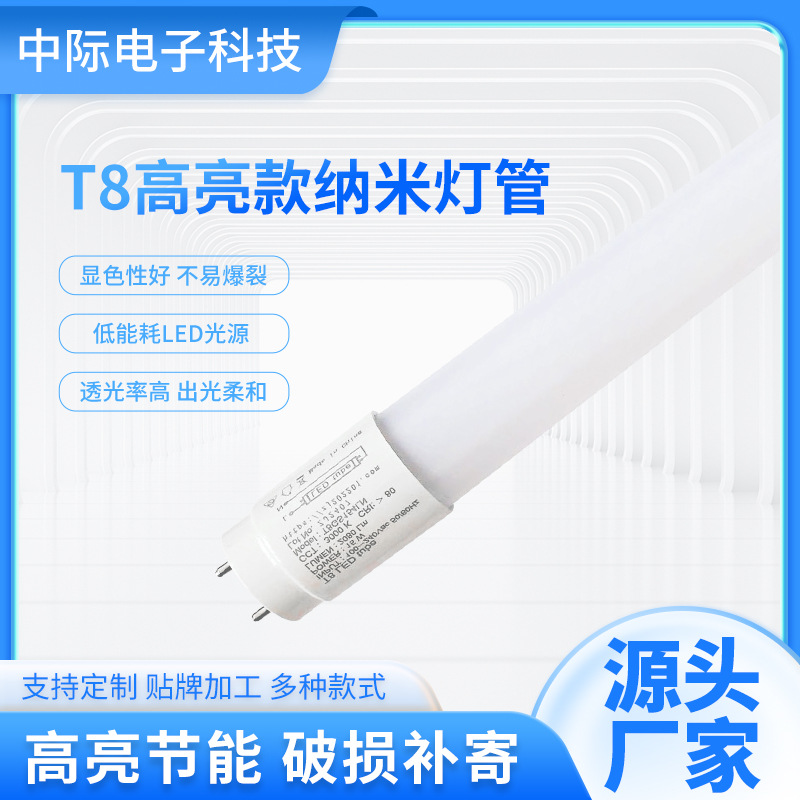 纳米LED灯管T8玻璃覆膜管LED光管长条纳米灯管家用超亮LED灯照明