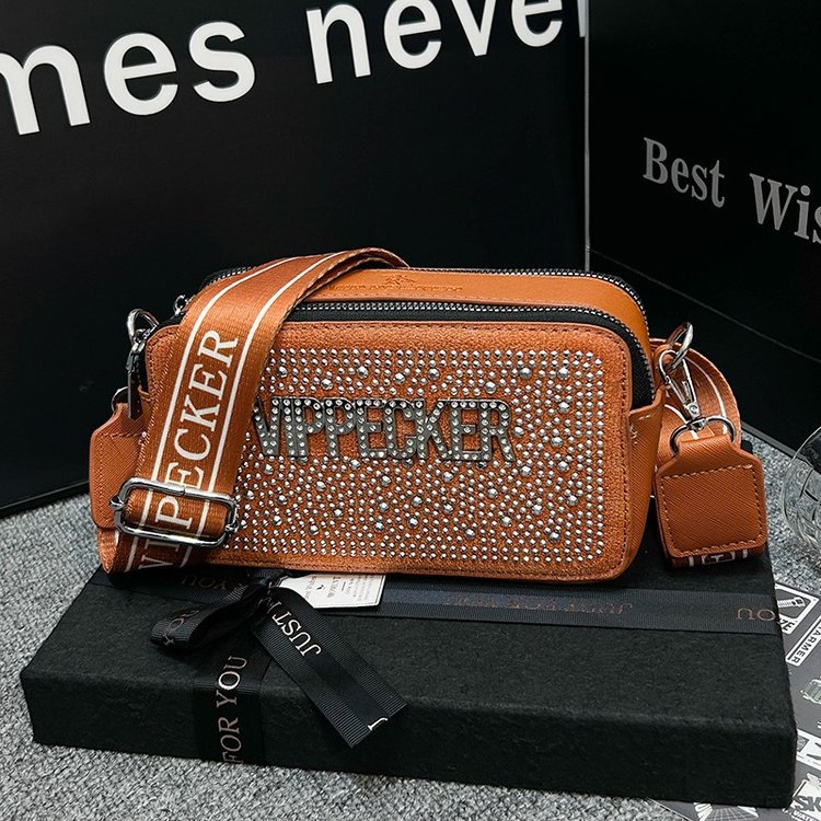 2025超火相机包时尚字母带钻小方包潮流洋气单肩百搭宽肩带斜挎包