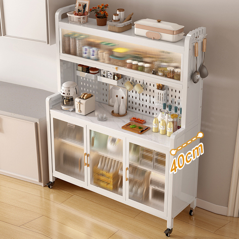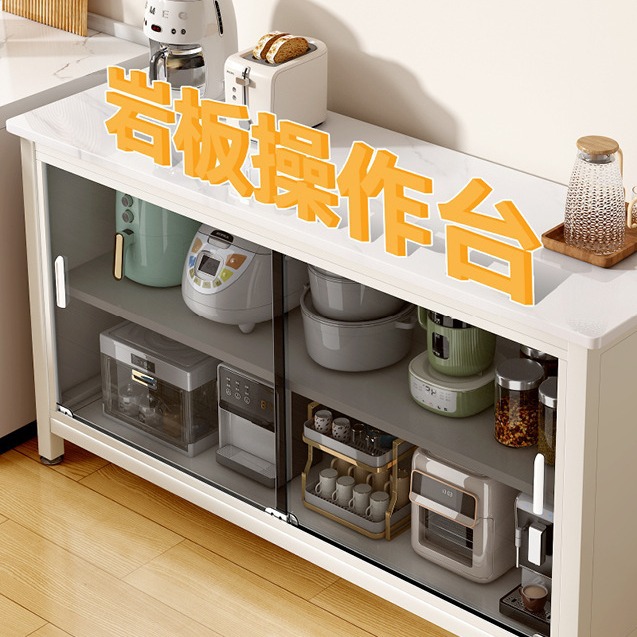 简约款厨房置物柜多层落地岩板收纳柜微波炉烤箱切菜餐边碗储物柜