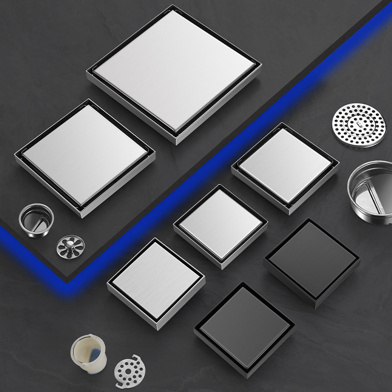 304不锈钢方形地漏真空镀枪灰隐形浴室阳台防臭加厚下水道大排量