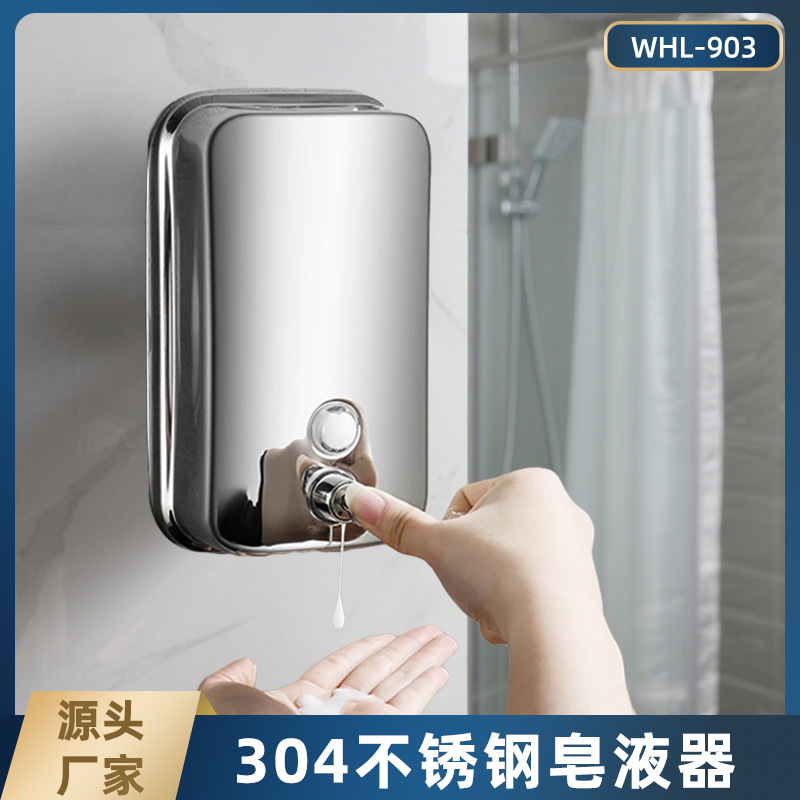 不锈钢304浴室卫生间按压式皂液器壁挂式打孔宾馆皂液盒免打孔
