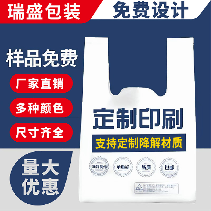 可降解塑料袋定 制logo超市购物外卖水果药店环保背心袋厂家