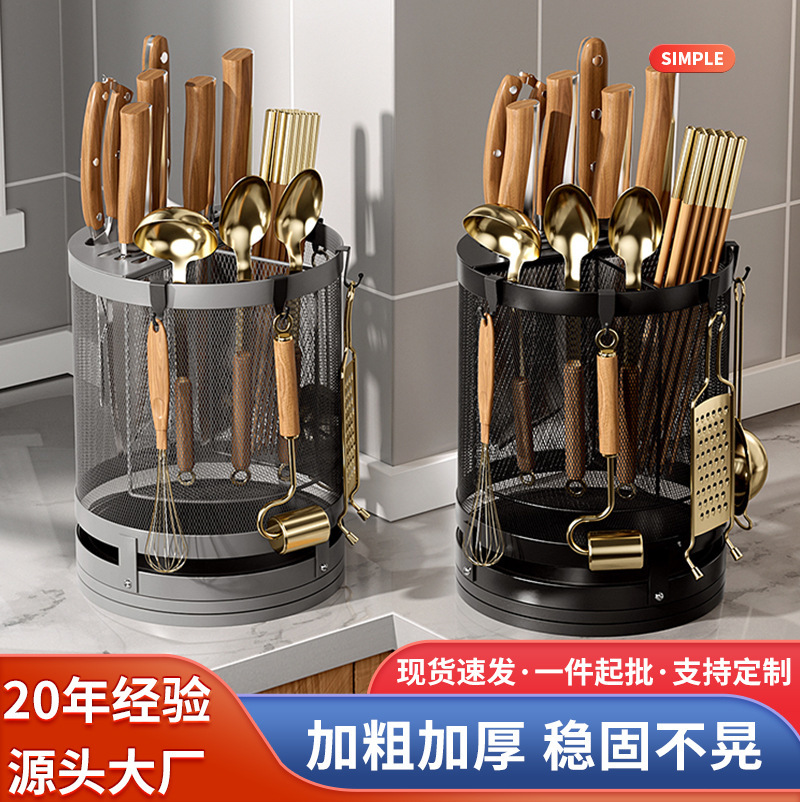 加厚不锈钢厨房旋转刀架台面置物架刀具筷子筒一体多功能收纳盒子
