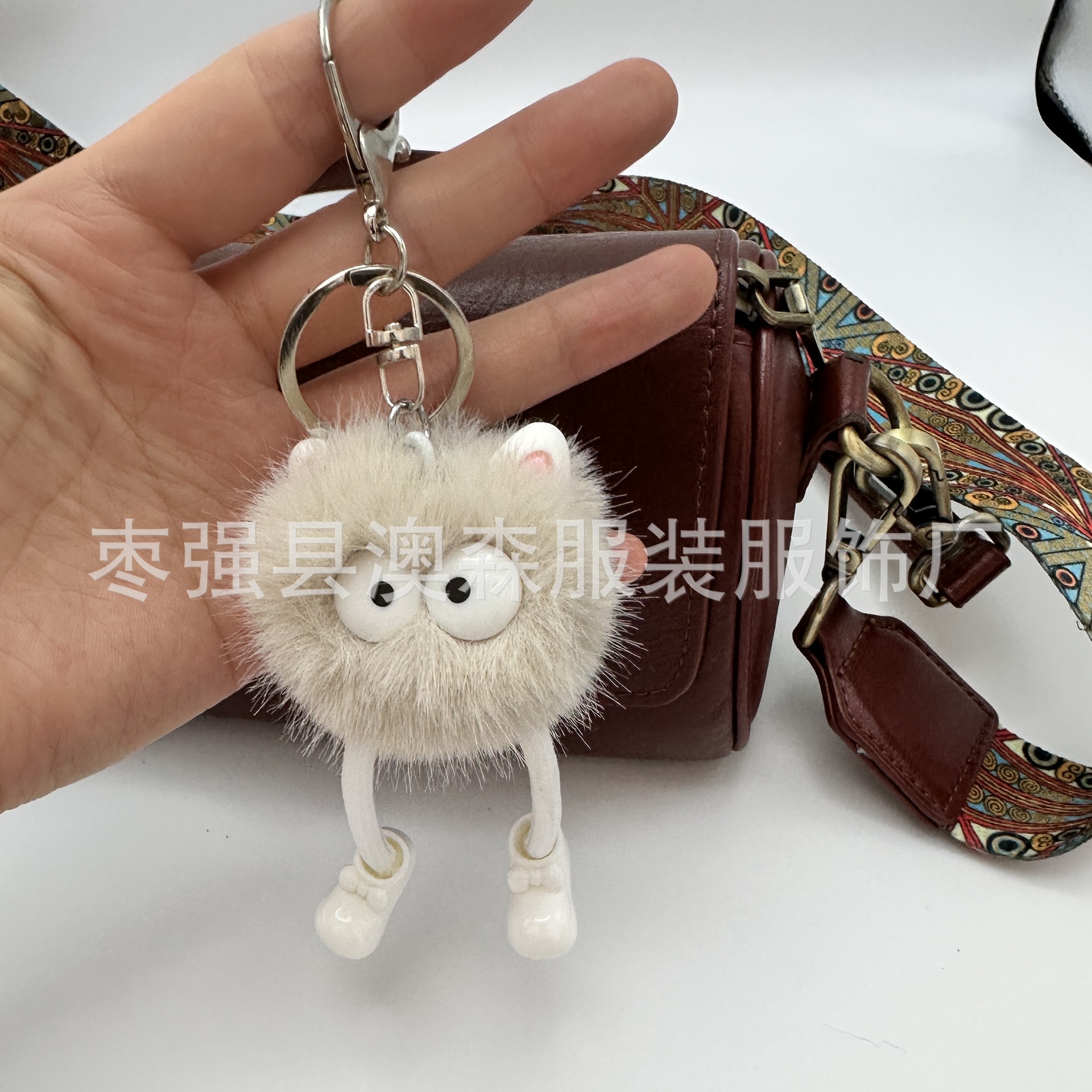 可爱仿獭兔大长腿毛绒小煤球创意百搭汽车钥匙扣挂件卡通公仔玩偶