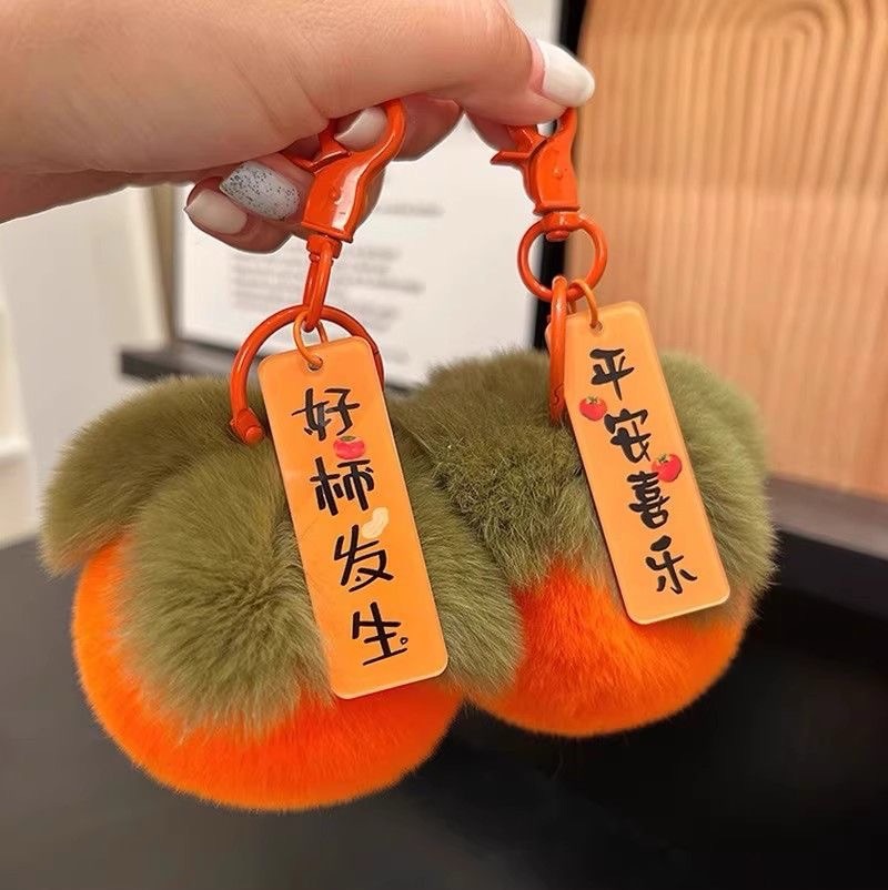 好柿发生书包挂件挂饰仿懒兔毛小柿子毛绒汽车钥匙扣可爱包包挂件