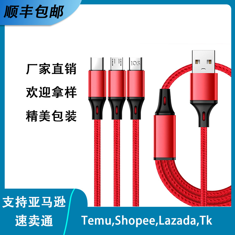 三合一车载数据线一拖三手机充电线CheapPhoneCable3in1包邮便携