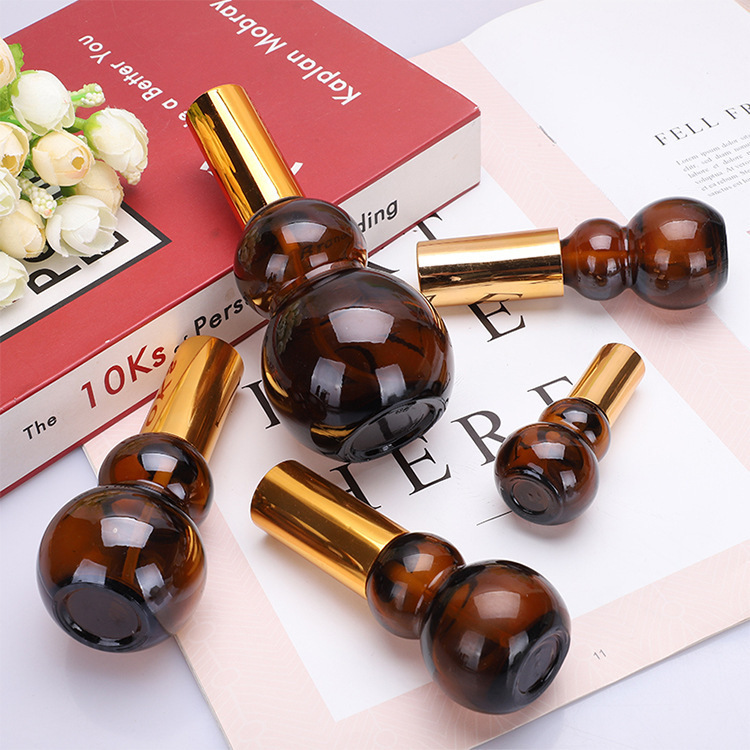 厂家批发茶色避光双葫芦滚珠精油瓶加厚玻璃瓶子旅行分装瓶现货
