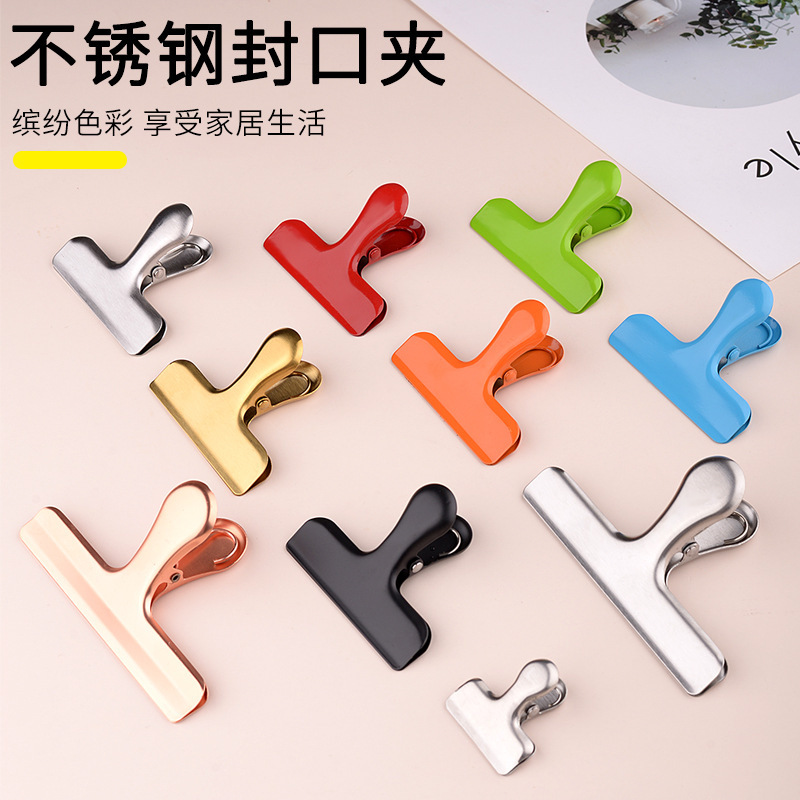 不锈钢强力喷漆镀金厨房封口夹零食袋夹文件夹密封夹子跨境热销