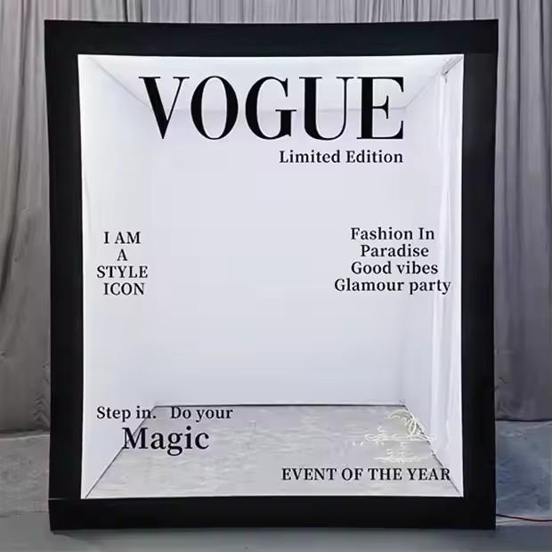 跨境热销便携式时尚杂志照片亭盒婚礼活动派对装饰拍照亭背景定制