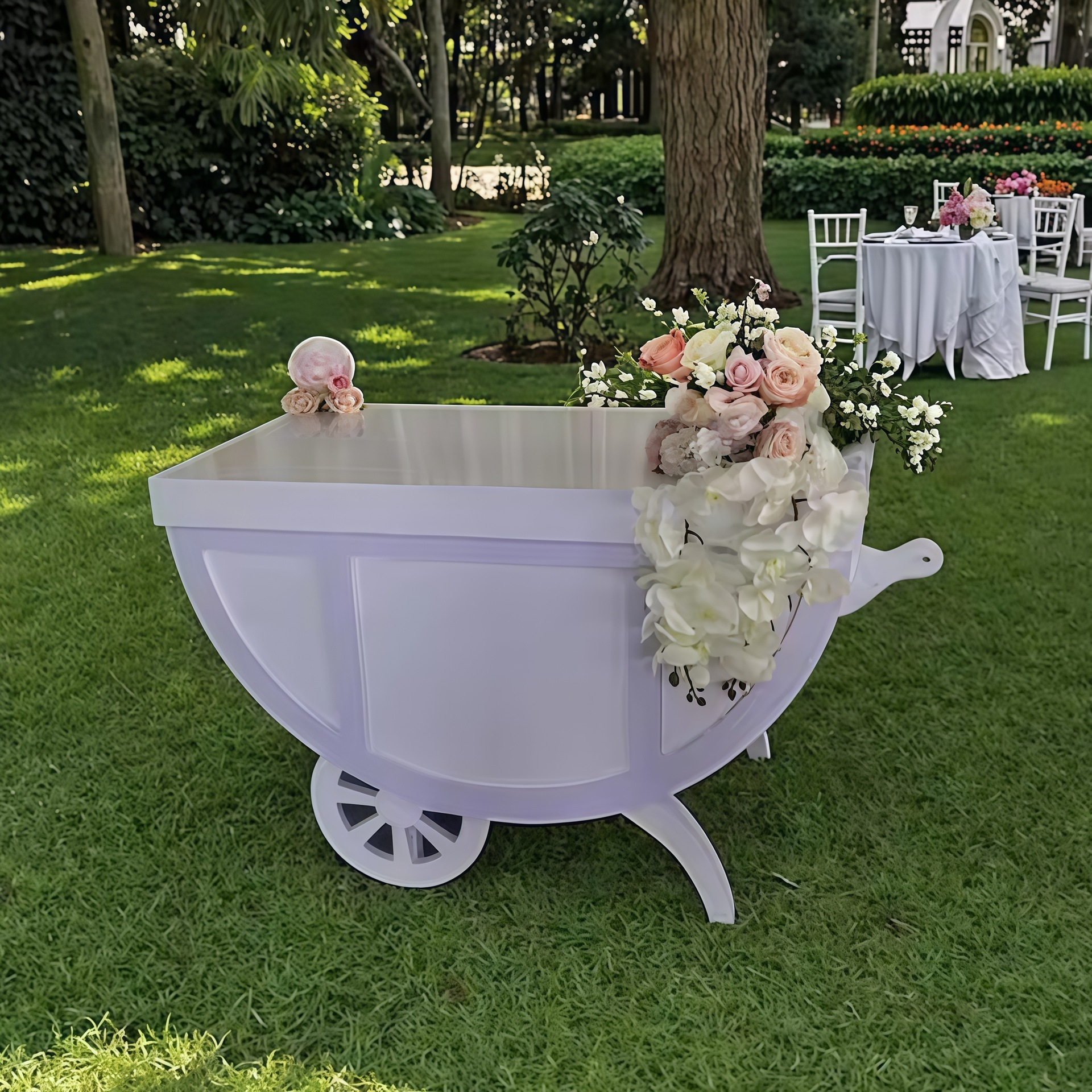 白色甜品车婚礼展示车酒吧婚庆派对香槟推车多功能大容量带轮花车