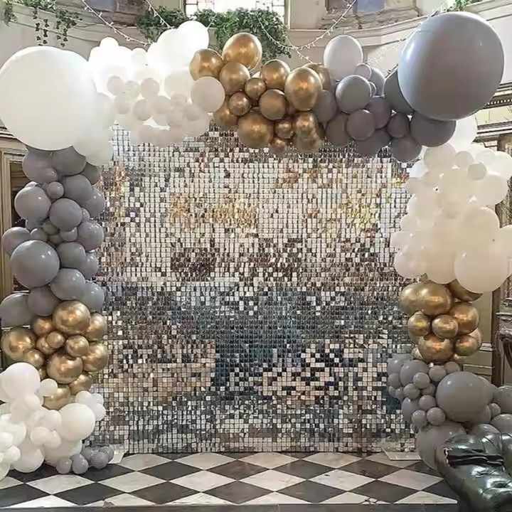 跨境方形风动板生日布置背景墙舞台婚礼装饰炫彩亮片风动板出厂价
