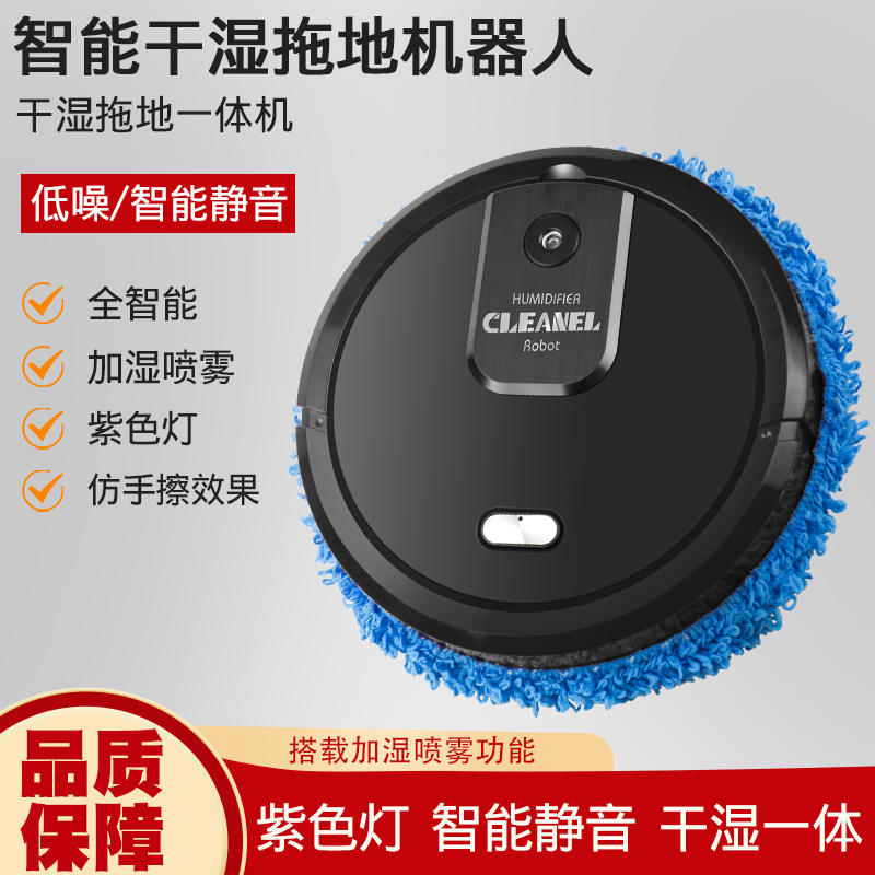 家用智能拖地机器人批发 喷雾空气加湿器紫色灯干湿两用洗地机