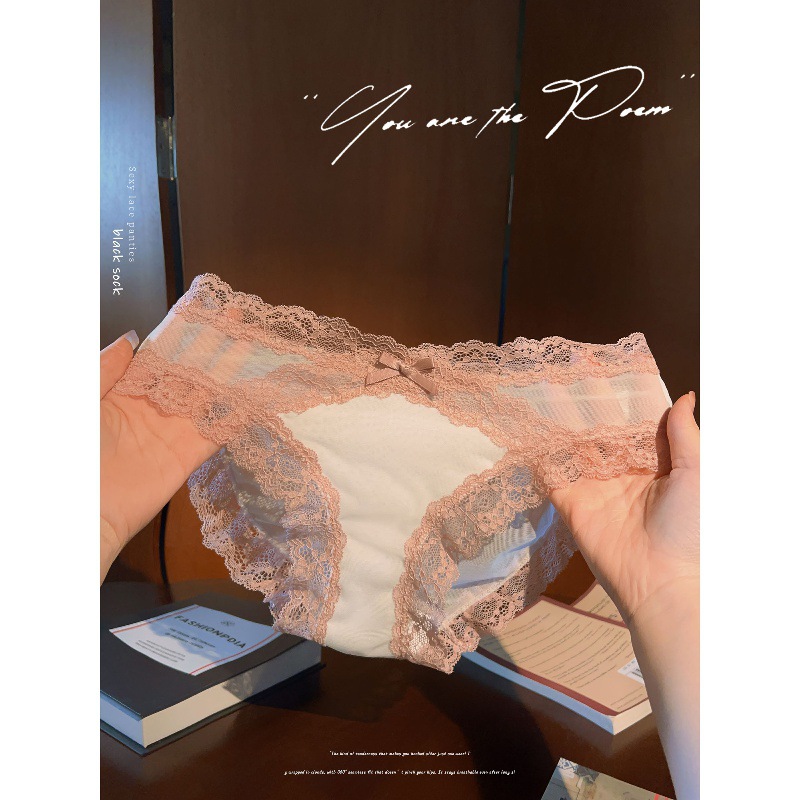 芭蕾风性感纯欲蕾丝女内裤中高腰透气纯棉10A抑菌档三角裤女