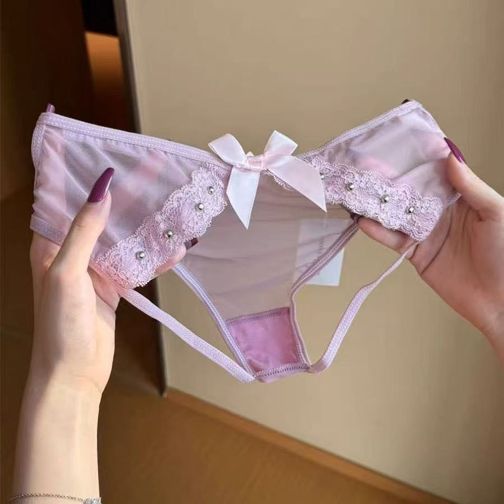 少女日系内裤女式性感蝴蝶结网纱蕾丝薄款透气交叉性感低腰小裤头