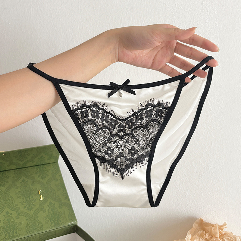 2025新款法式蕾丝纯欲纯色缎面镂空低腰三角内裤女透气全棉裆丝缎