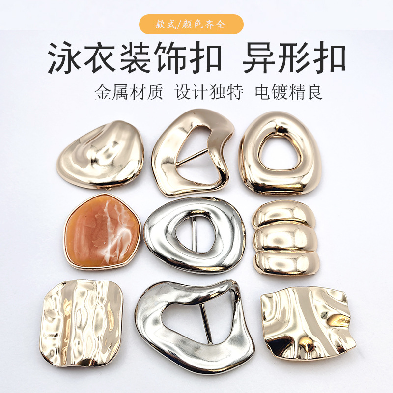 现货钮扣不规则泳衣前扣金属配饰泳装连接合金胸前时尚内衣