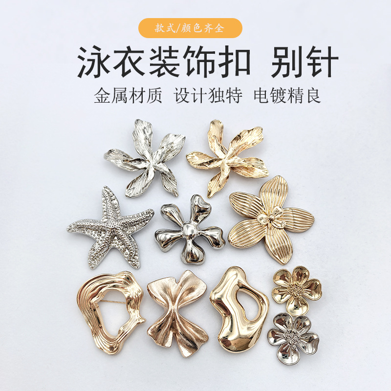 欧美时尚泳装跨境金属胸前连接装饰海星扣异形扣连衣裙泳衣装现货