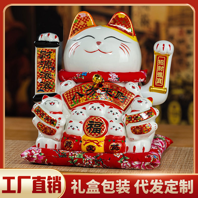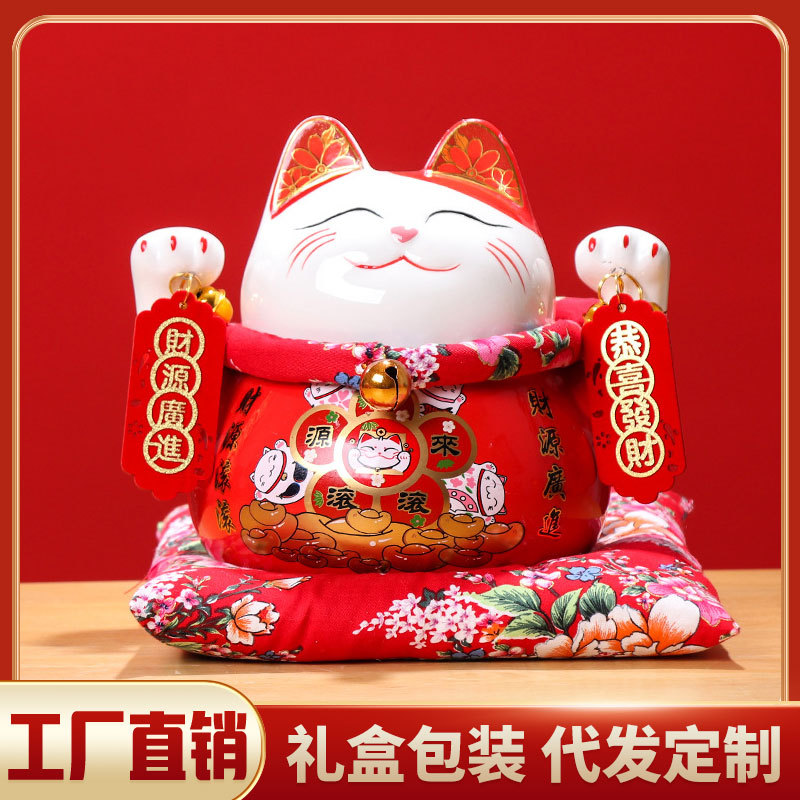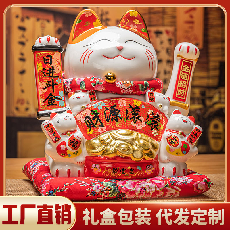 陶瓷摇手招财猫摆件乔迁开业大号店铺收银台家居客厅礼品自动招手