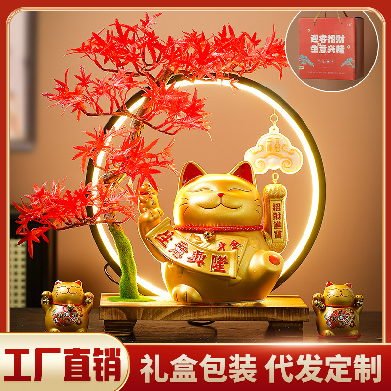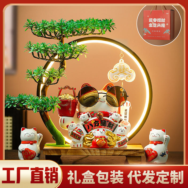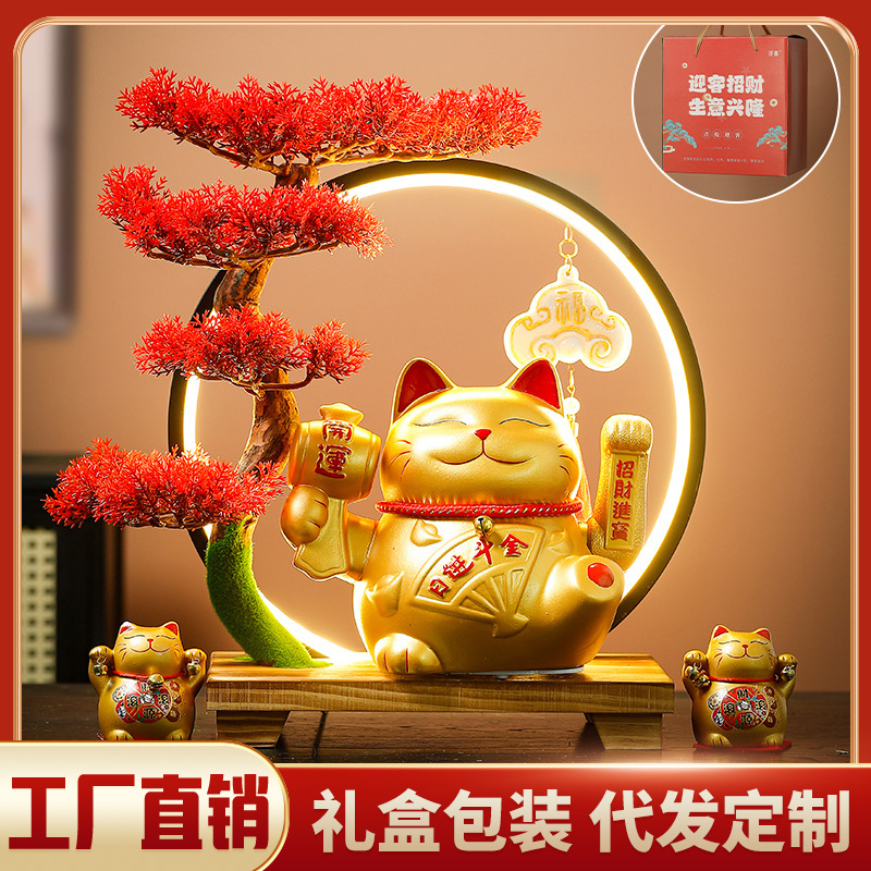 新款创意发财树招财猫摆件开业电视柜客厅乔迁新居酒柜装饰品礼物