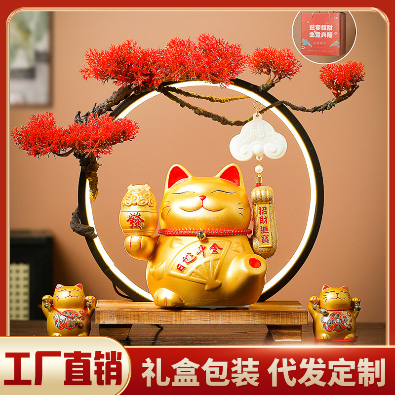 乔迁新居礼品招财猫摆件新中式客厅玄关桌面装饰品办公室发财猫