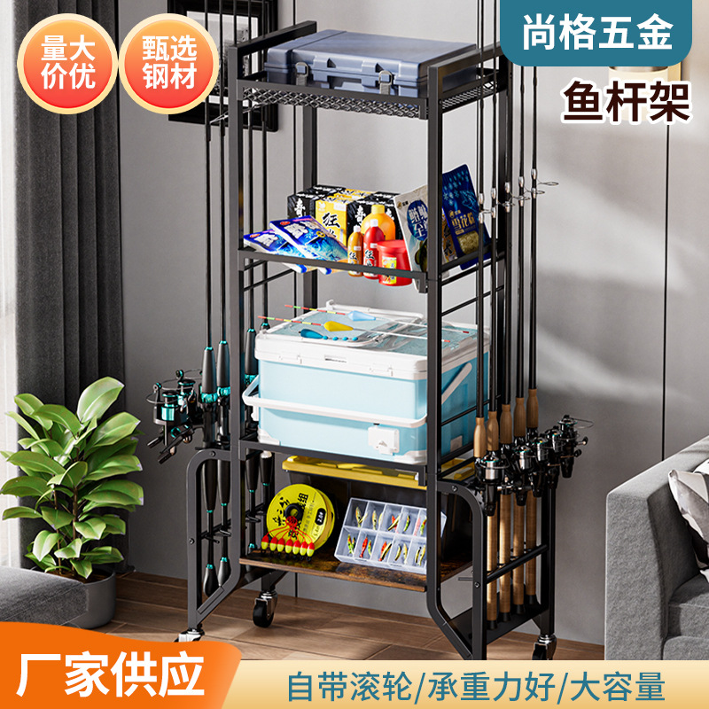 鱼杆架家居可移动推车渔具整理收纳架工具箱钓箱钓椅鱼竿展示架