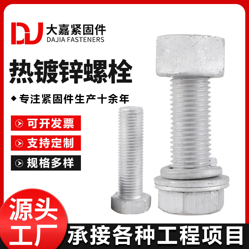 厂家现货热镀锌螺栓螺母热浸锌外六角螺丝光伏电力全扣螺杆