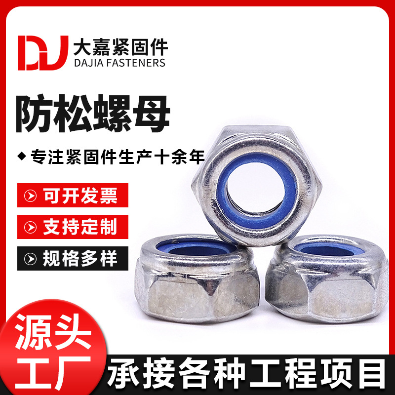 厂家现货热镀锌防松螺母自锁螺母铁尼龙锁紧六角防松螺丝