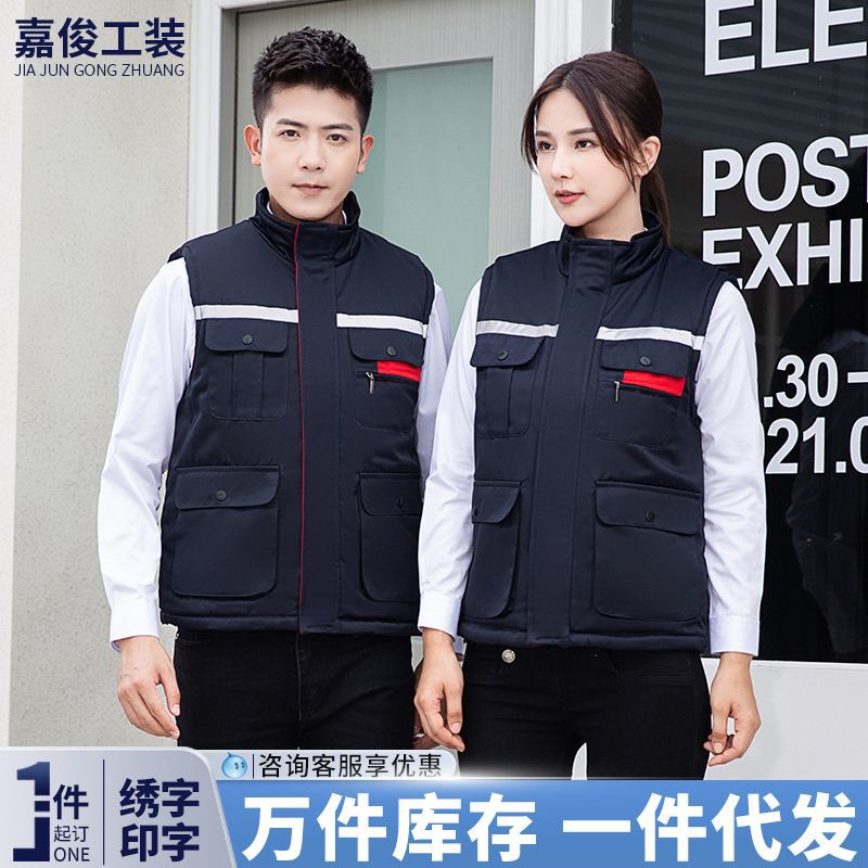 秋冬马甲工作服男加厚汽修车间工装背心反光坎肩劳保服夹棉服装