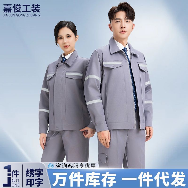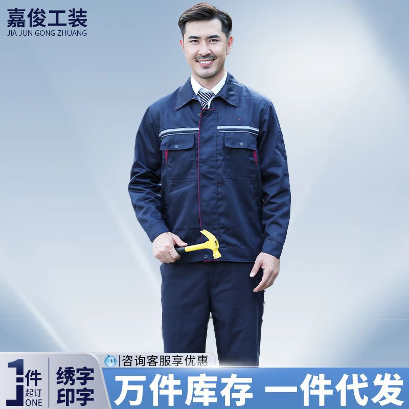 春秋冬长袖劳保工作服套装耐脏工厂车间工地建筑耐磨反光条汽修服