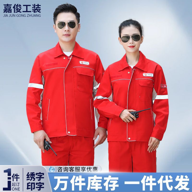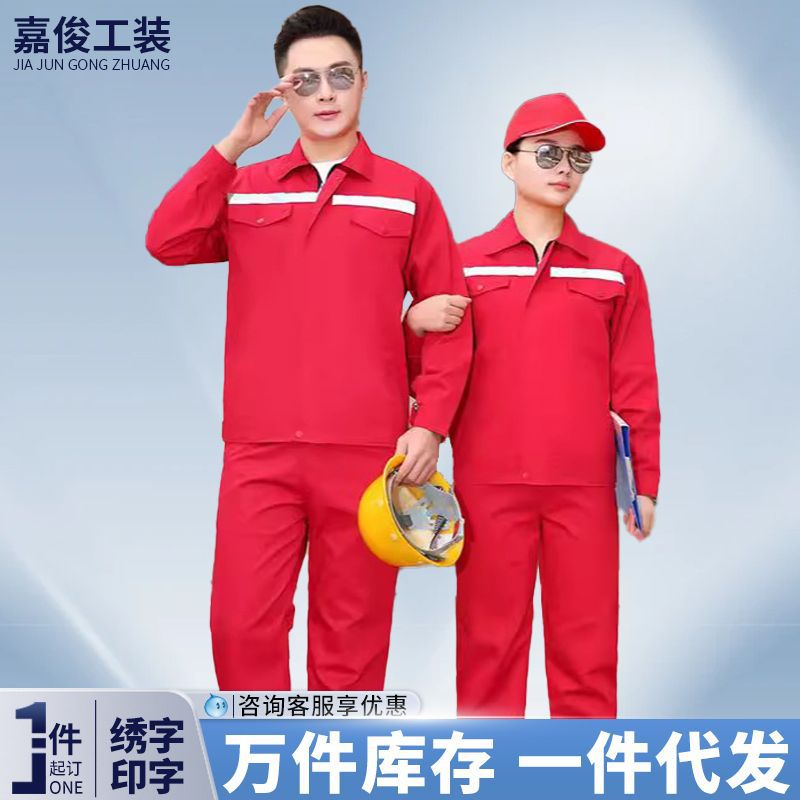 新款工作服男女同款薄款透气套装春秋纯棉长袖工装反光条劳保服