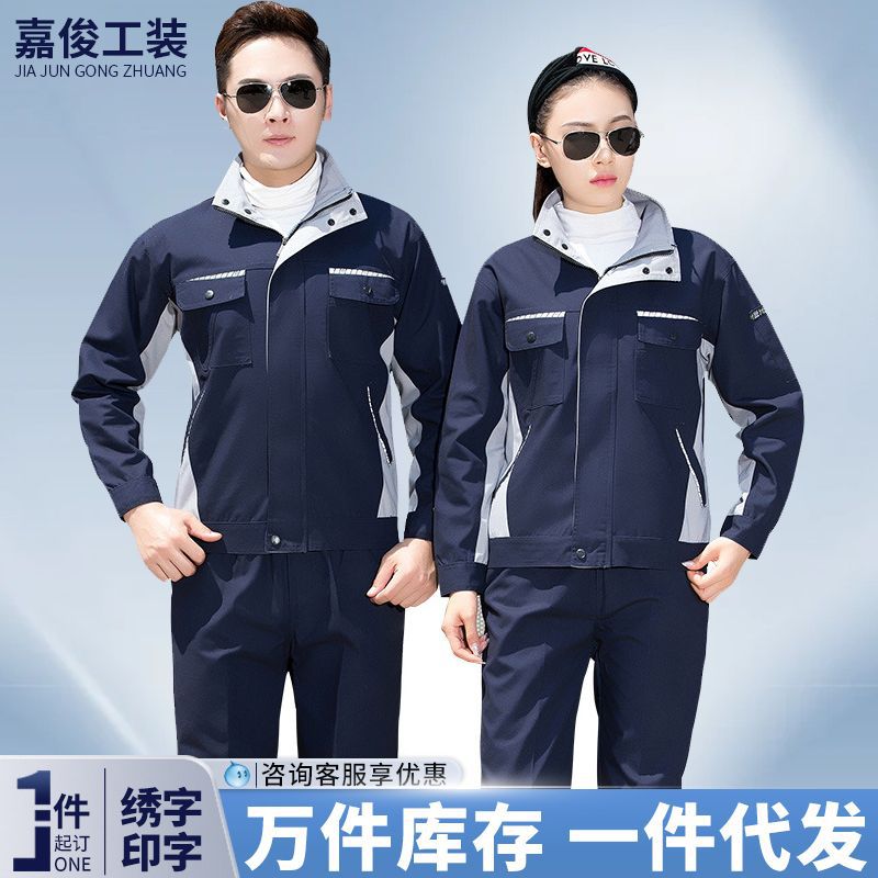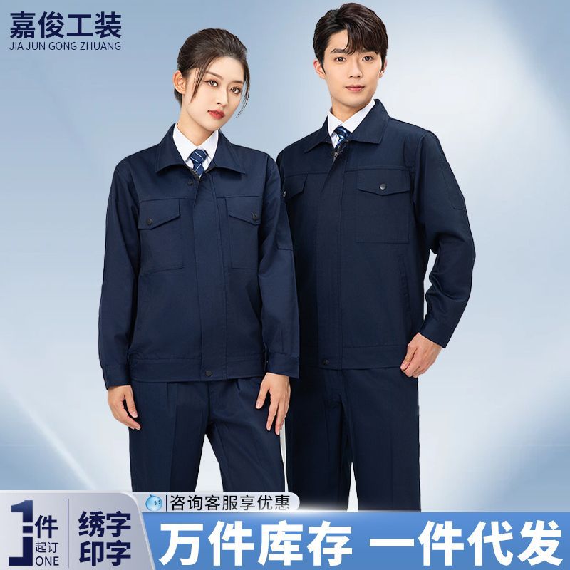 劳保工作服套装加厚春秋长袖男款劳保服工厂车间工服印字长袖厂服