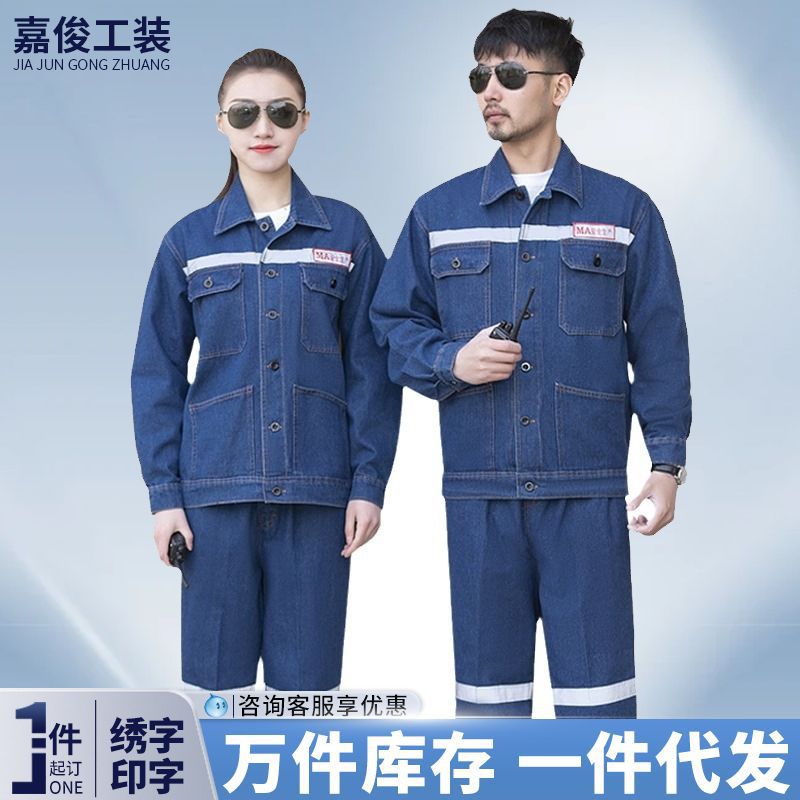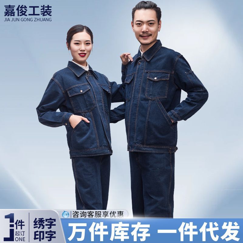 春秋牛仔工作服套装耐磨电焊劳保工作服工地车间服饰汽修劳保服