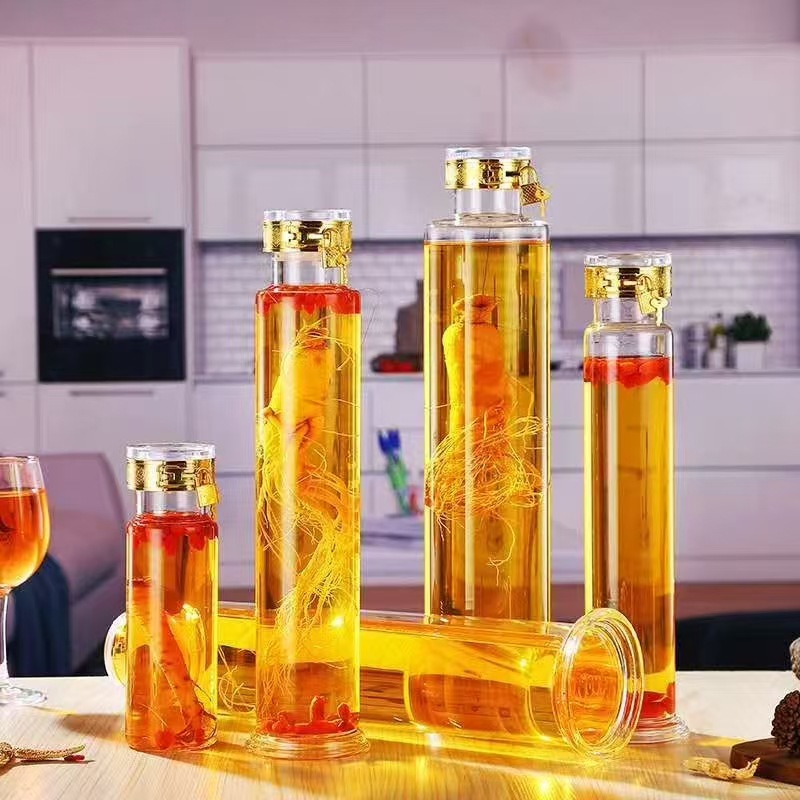 厂家供应高硼硅玻璃泡酒瓶人参泡酒瓶养生白酒瓶保健品瓶