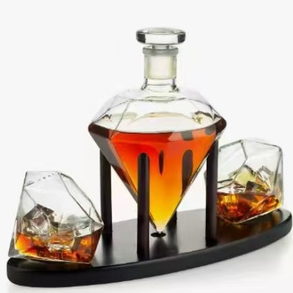 厂家直销套装醒酒器钻石350毫升带酒杯款带木底座,钻石款