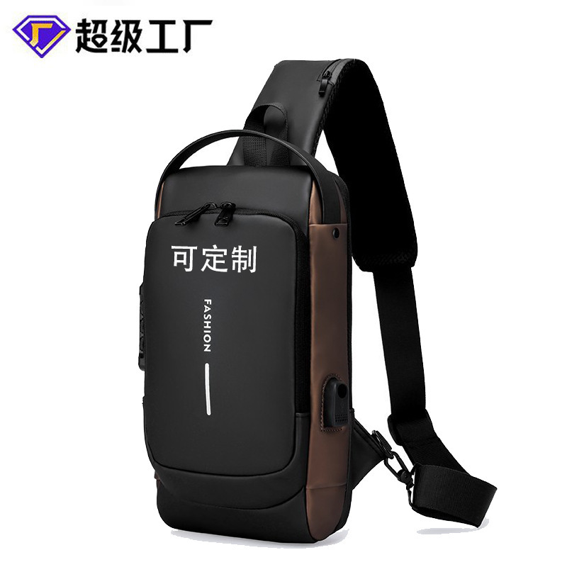 运动胸包新款防水单肩男包斜挎包防盗USB充电骑行大容量商务胸包