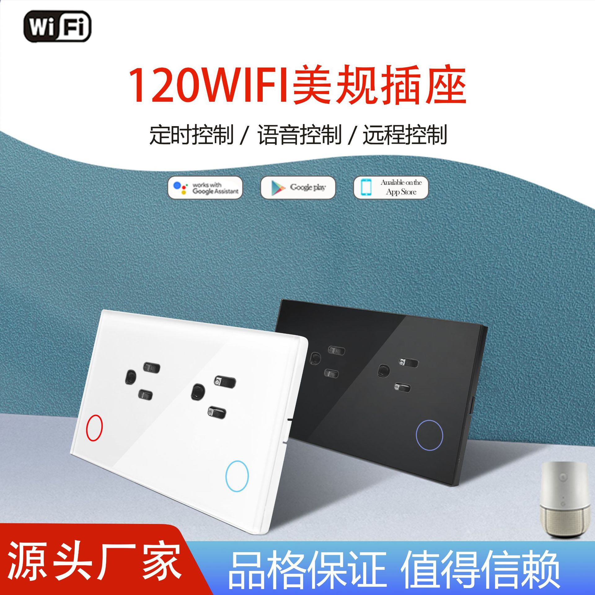 美规涂鸦WiFi智能插座带计电量谷歌语音远程控制钢化玻璃智能家居