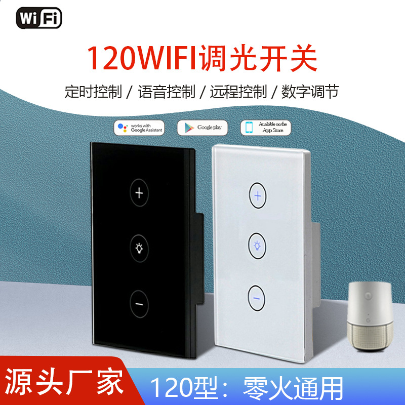 美规涂鸦WiFi智能调光开关触摸玻璃面板语音远程app控制120型